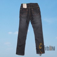 Описание: Джинсы для девочки с контрастной отстрочкой, легкими потертостями и модными замятостями в верхней части и у карманов. Застегиваются на молнию и скобу (имитация пуговицы). Сзади - одинарные карманы, спереди - двойной и одинарный карманы с вставками из кожи. Объем талии регулируется внутренней утягивающей резинкой. Модель узкого кроя (ROSI).